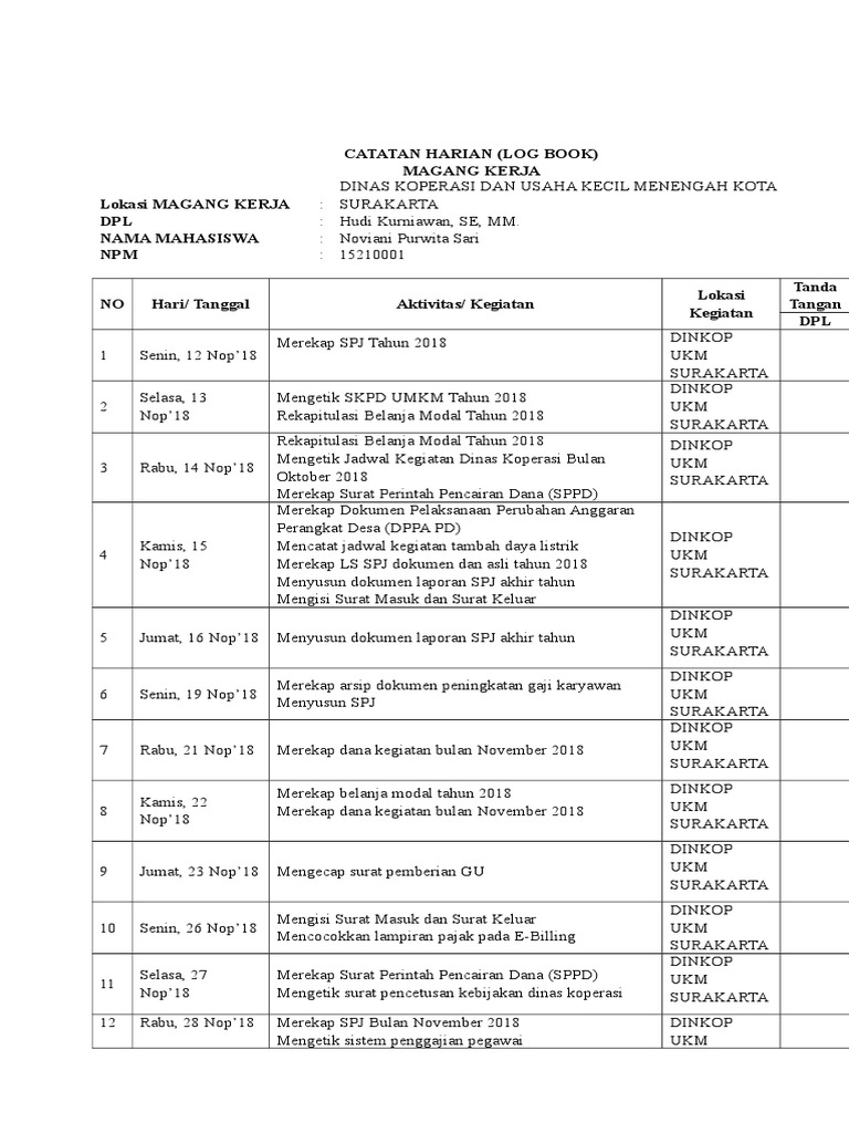 Simpan Simpan Logbook Kegiatan Magang PT SBA Untuk Nanti. Aktifitas dalam satu hari minimal dibuat dalam satu halaman. Log book magang kerja no tanggal jam kegiatan uraian ttd 1 14 juli membuat surat pengantar rumah sakit.